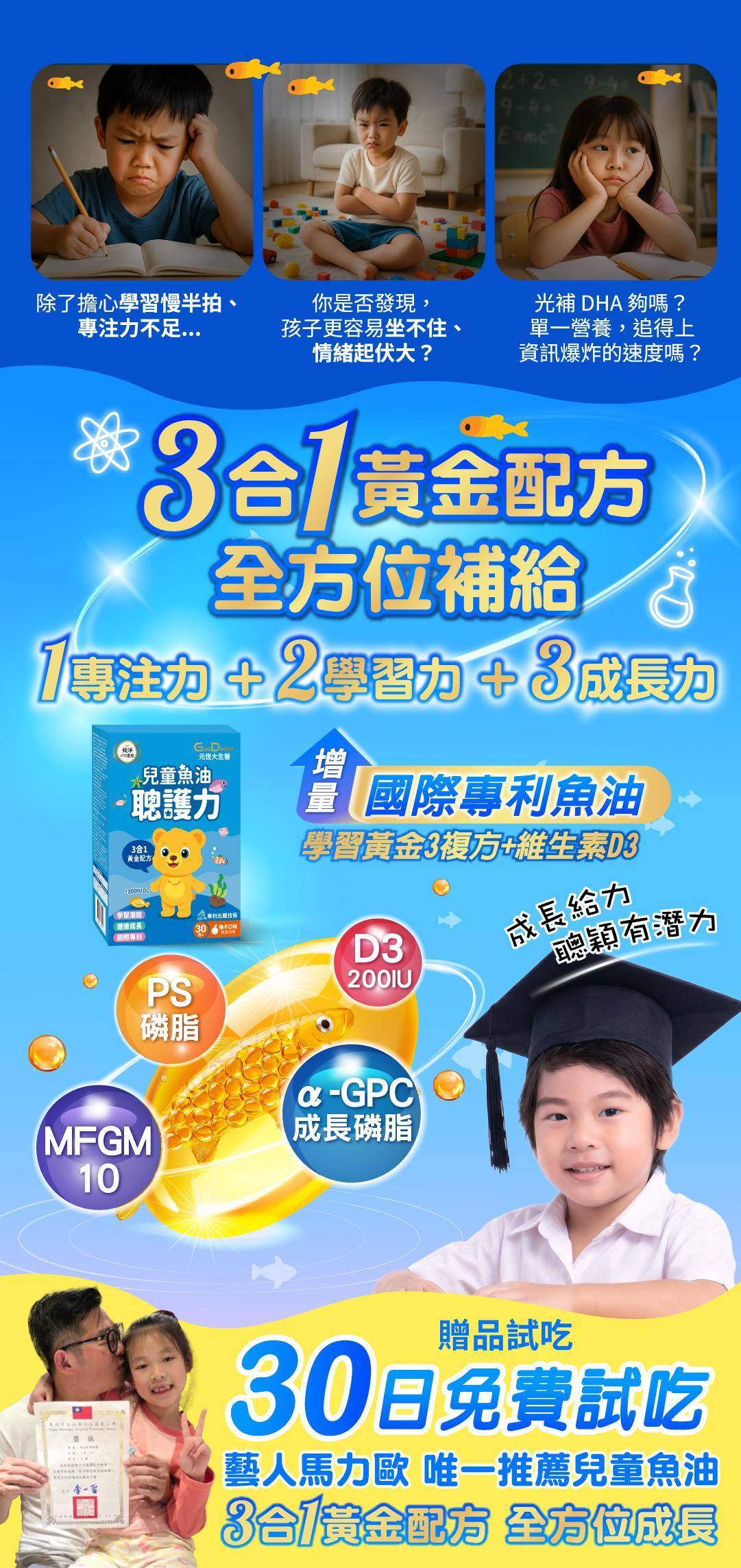 ✔ 一顆補足 魚油+學習複方+D3