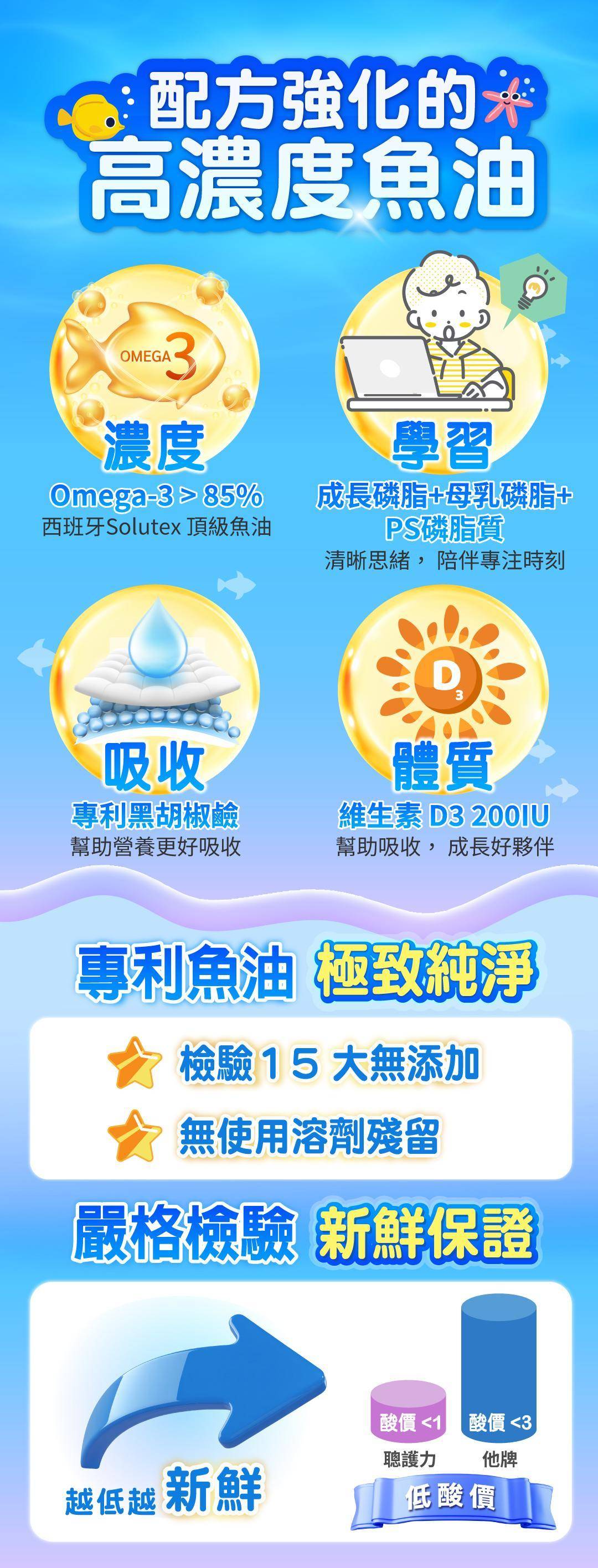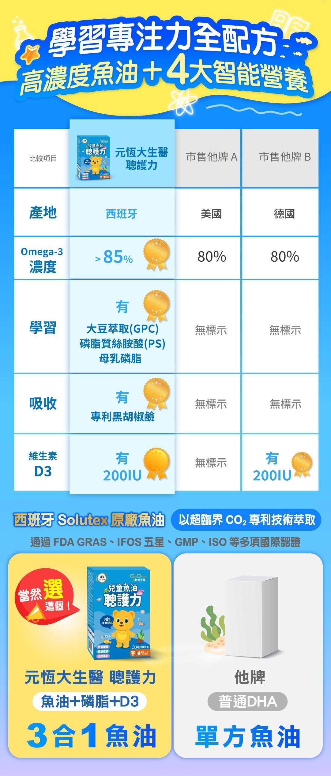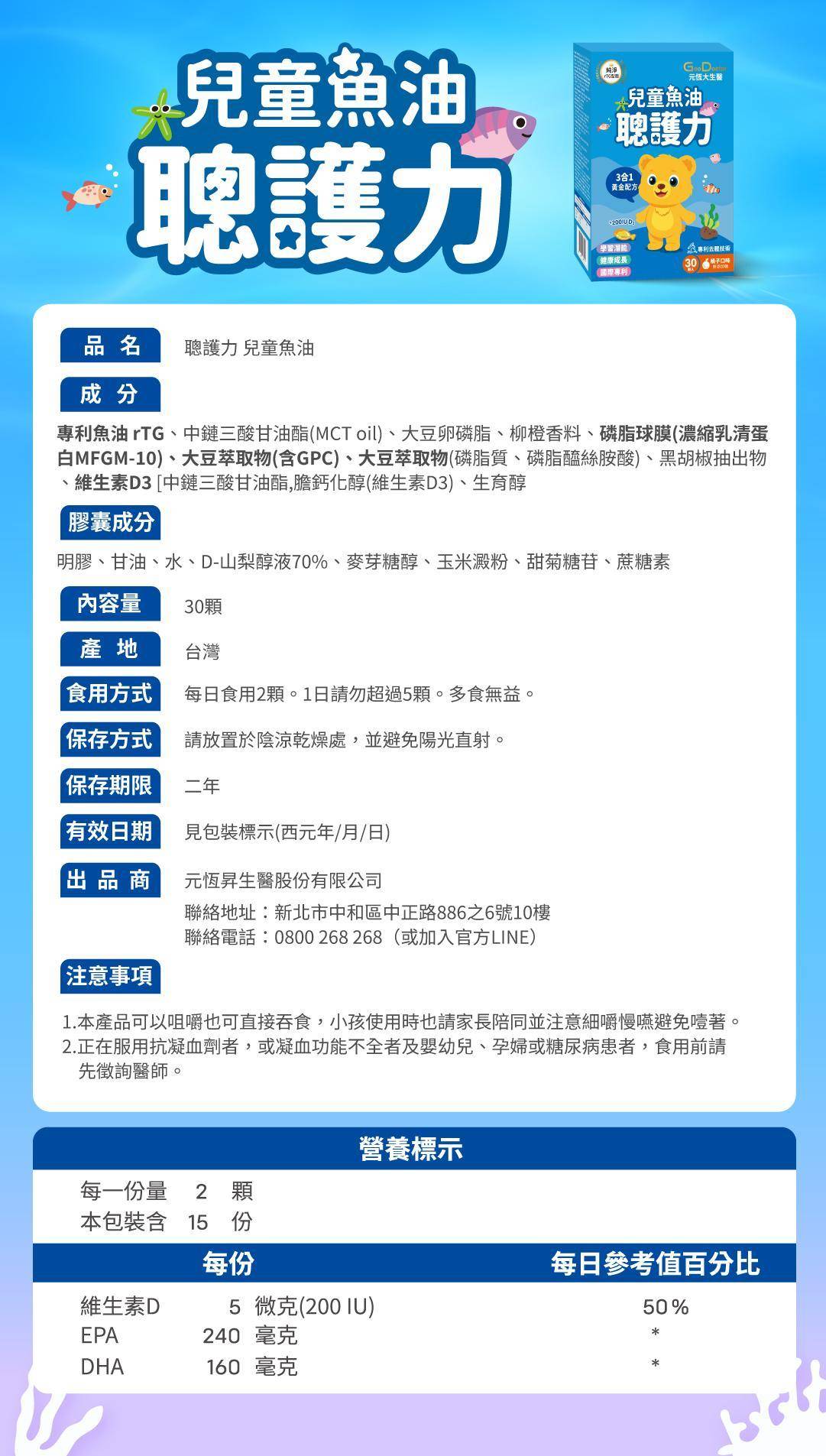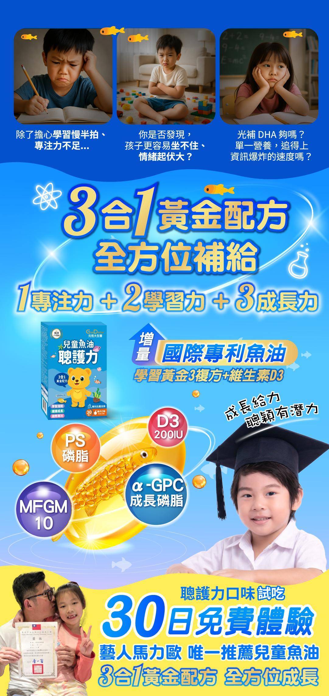 【兒童魚油首選 好吃無腥味】聰護力兒童魚油 三合一黃金配方 豐富複方 魚油+學習配方|限時附贈1盒"小盒贈品"免費試吃優先 詳情請見下方資訊欄